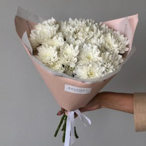 Букет “Летнее утро” S – кустовые пионовидные розы с ромашками