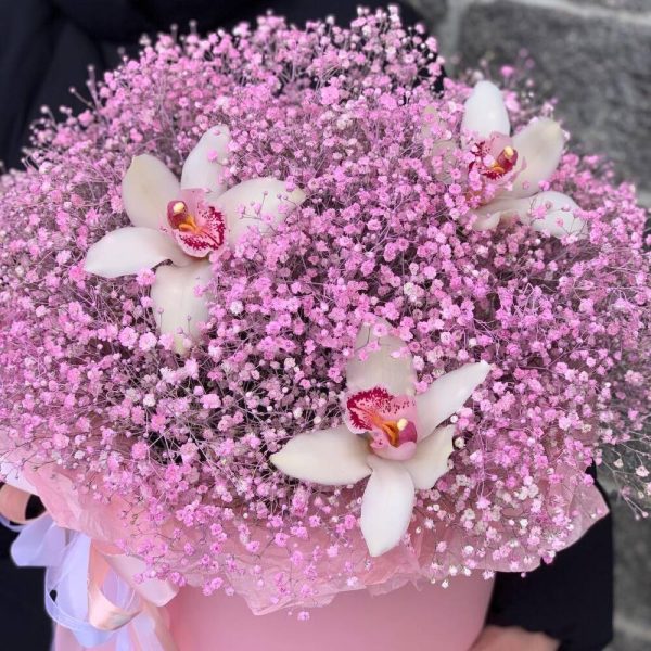 Стильная шляпная коробка со свежими цветами станет идеальным подарком для самых любимых и близких! Памятка для букета:1. Чистая вода раз в сутки.2. Стебли подрезаем на 0,5см при каждой смене воды.3. Ставим в прохладное место, но не у окна.4. Чтобы вода оставалась свежей, не допускайте попадания листьев и лепестков в воду.5. Если это композиция в оазисе, то так же необходим ежедневный полив.