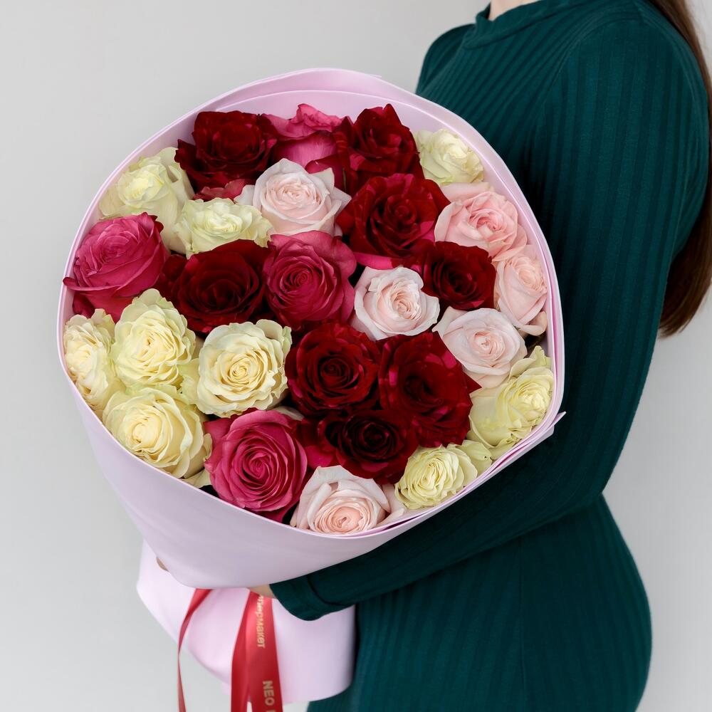 25 крупных роз микс в Малоярославце